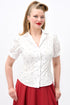 The Luana Anchor Shirt is 40s inspired perfection when tucked into a swing or straight skirt, and also looks great with trousers. Anchors aweigh with this retro nautical print pattern.