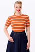 Let's get down to the knitty gritty with the Lynn Striped Knitted Top! A classic 1950's inspired cable knit top in burnt orange with white stripes, this top ends at the waist to pair perfectly with our high waist skirts and trousers.